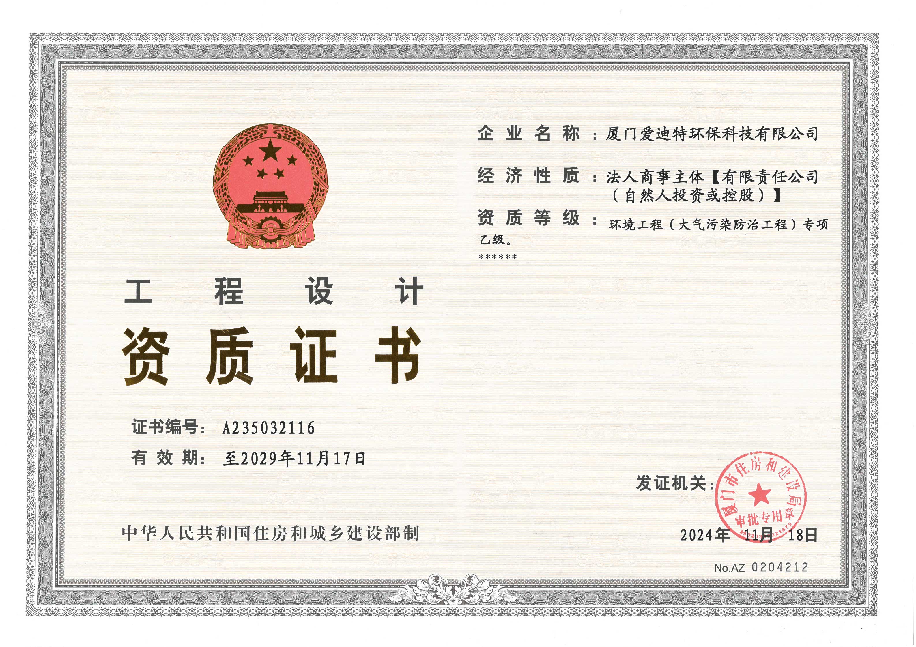 環(huán)境工程(大氣污染防治工程)專項乙級資質(zhì)